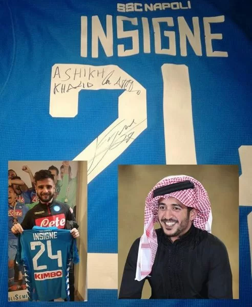 Sta diventando virale il video e le foto pubblicate nalla pagina Instagram @princekhalidbahrain dove il giocatore del Napoli autografa con dedica una maglia per il Principe del Bahrain: “A Shikh Khalid con affetto Lorenzo Insigne “