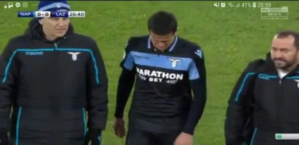 Al 26′ minuto di gioco il biancoceleste è stato costretto a lasciare il campo per un problema fisico, al suo posto è entrato in campo il brasiliano Michael Bastos.