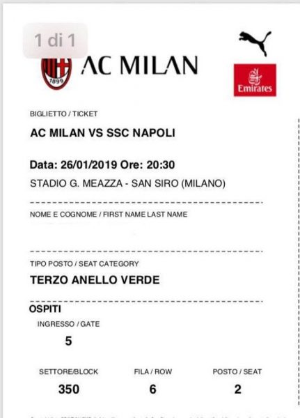 Detto e fatto, perché Milan-Napoli si giocherà con la presenza dei tifosi del Napoli residenti in Campania ed in regolare possesso della Tessera del Tifoso, come segnalato da un lettore di SpazioNapoli.it e chiarito dal Milan stesso che ha abilitato l’acquisto dei tagliandi ai tifosi campani fino al prossimo 25 gennaio, cioè domani, giornata di vigilia della partita.