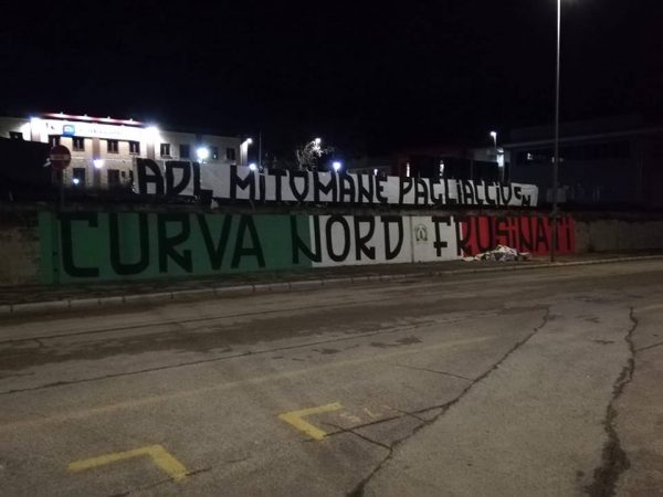 Dopo l’incredibile botta e risposta di pochi giorni fa tra De Laurentiis e il presidente del Frosinone Stirpe, i tifosi giallazzurri si schierano. Dalla Curva Nord Frusinati, infatti, è arrivato un duro striscione contro De Laurentiis, esposto per le vie della città di Frosinone.