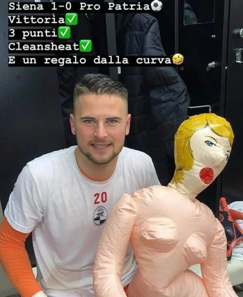 Tra i protagonisti di questa stagione c’è sicuramente il portiere in prestito dal Napoli, Nikita Contini. L’estremo difensore, al termine della gara, è stato festeggiato dai tifosi con tanta goliardia. Infatti gli è stata regalata una bambola gonfiabile, come premio per il clean sheet ed i tre punti portati a casa.