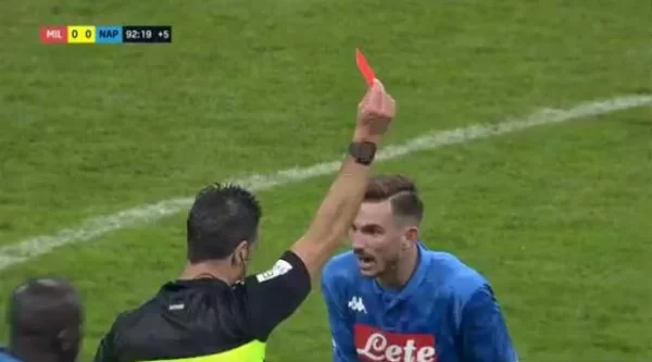 “Arbitro Doveri 4: fa tutto bene tranne le due decisioni che influenzano il risultato e penalizzano il Napoli: non dà rigore per il calcio di Bakayoko su Insigne e espulsione inesistente di Fabian Ruiz”