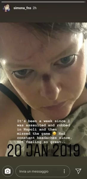Simona è stata a Napoli per vedere la gara con la Lazio la scorsa settimana. Ebbene, è stata sfortunata protagonista di un pessimo avvenimento: tra piazza Garibaldi e Via Carbonara è stata derubata del portafogli e aggredita con un colpo alla testa.