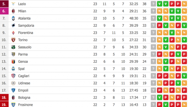 QUESTA LA CLASSIFICA AGGIORNATA: