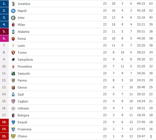 Si è ufficialmente conclusa la quarta giornata di ritorno in Serie A. Dopo il pari senza reti di ieri del Napoli contro la Fiorentina, la Juventus ne ha approfittato, tornando a +11 sugli azzurri e avvicinandosi alla conquista di un altro scudetto: al Mapei Stadium il Sassuolo è capitolato per 0-3.