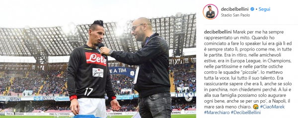 Anche Decibel Bellini, storico speaker del San Paolo, ha scritto uno struggente messaggio per Marek Hamsik tramite i propri canali social. Si legge: