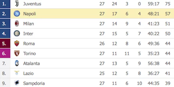 Prosegue il campionato di Serie A con la 27ª giornata. Il Napoli pareggia 1-1 al Mapei Stadium contro il Sassuolo e concede all’inseguitrici di recuperare qualche punto. Accorciano sugli azzurri, dunque, Milan e Inter, entrambe vittoriose in questo 27o turno di campionato. I rossoneri si portano a 6 distanze dal Napoli, mentre i nerazzurri a 7.