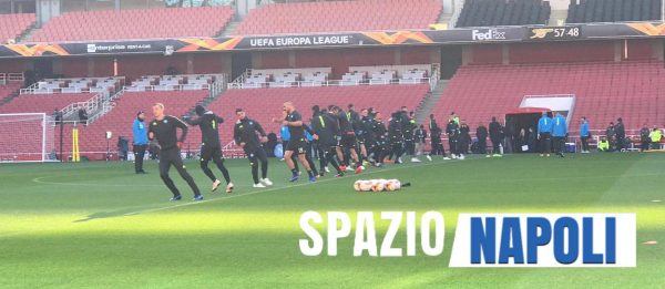 Alla vigilia del match di Europa League tra Arsenal e Napoli, i ragazzi di mister Ancelotti hanno sostenuto il consueto allenamento sul campo dei padroni di casa.