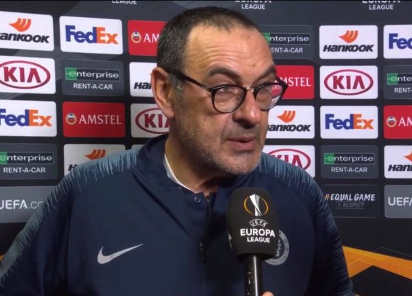 Maurizio Sarri ai microfoni di Sky commenta la vittoria del Chelsea contro lo Slavia Praga per 4 a 3. La sua squadra si è qualificata al prossimo turno di Europa League.