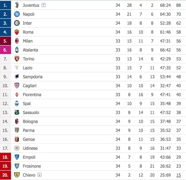 Le altre gare del pomeriggio hanno visto dure pareggi tra Chievo-Parma e Spal-Genoa, entrambi con il punteggio di 1-1.
