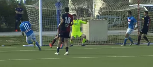 22′ – GOOOL!!! Lovisa porta in vantaggio il Napoli. Grande cross di Zedadka dalla sinistra, Lovisa svetta al centro della difesa del Cagliari e insacca di testa.