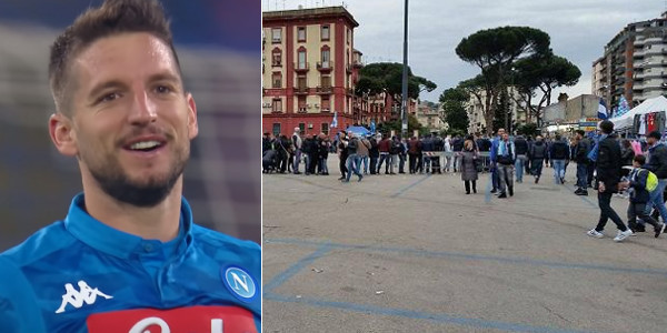 Parliamo di Dries Mertens che oggi vivrà una gioia particolare. Per l’attaccante, come mostra la foto sottostante scattata dagli inviati di SpazioNapoli al San Paolo, sono arrivati tifosi speciali direttamente dal Belgio che lo sosterranno nel match di questa sera con l’Inter.