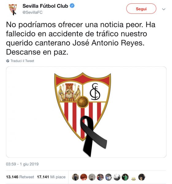 La notizia della tragica morte è stata diffusa via Twitter dal Siviglia, il club che l’ha lanciato nel grande calcio.