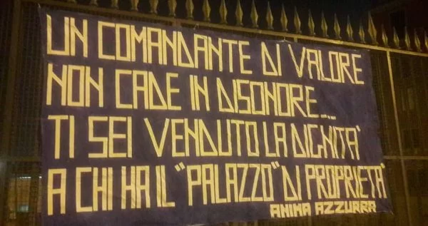 “Un comandante di valore non cade in disonore… ti sei venduto la dignità a chi ha il “palazzo” di proprietà. Anima Azzurra”.