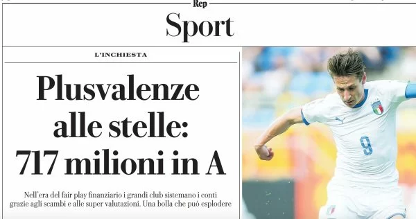 PLUSVALENZE SERIE A – L’edizione odierna di Repubblica si sofferma su un caso che sta facendo parecchio discutere in Italia, ovvero quello relativo alle plusvalenze – in certi casi sembrate esagerate – generate dagli affari tra club di Serie A.