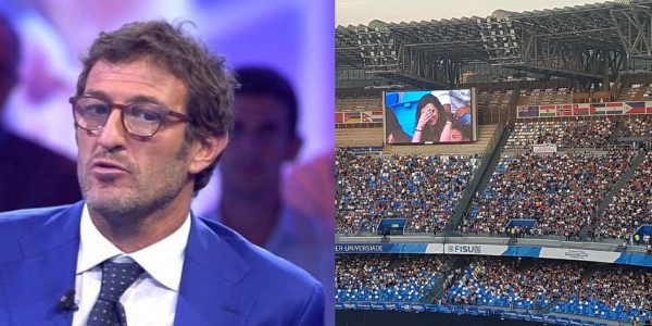 Inquadrato anche Ciro Ferrara. La reazione del pubblico, a maggioranza di fede partenopea, non è stata delle migliori: i copiosi fischi hanno costretto a cambiare inquadratura.