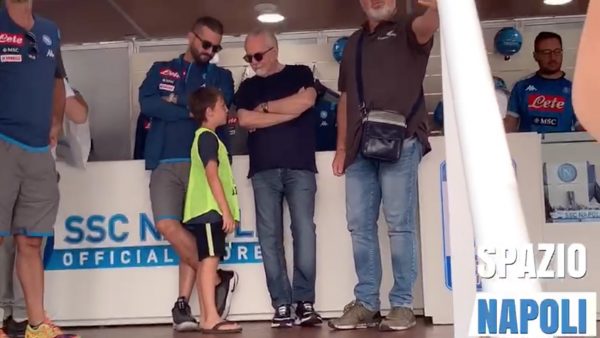 Ad un certo punto, all’interno dello store della SSC Napoli, c’è stato un simpatico siparietto con un bambino che ha chiesto un colloquio al presidente. I due hanno parlato per qualche secondo, con il piccolo tifoso che avrà avanzato la proprio richiesta al patron.