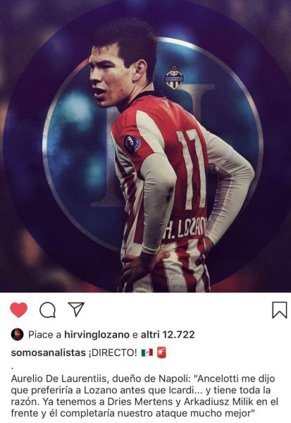 Il calciatore piace molto ad Ancelotti, non è un mistero, l’allenatore lo puntò già durante il Mondiale in Russia lo scorso anno. Sui social è spuntata in questi giorni una notizia che lo vorrebbe vicino al Napoli, non ci sarebbe nulla di strano, se non fosse che il messicano ha messo “mi piace” a questa notizia di mercato. “Mi piace” che è stato poi rimosso successivamente, forse per evitare di creare polemiche con il proprio club di appartenenza. Lozano è davvero così vicino agli azzurri oppure è una semplice casualità? Sarà il tempo a rivelare la verità.