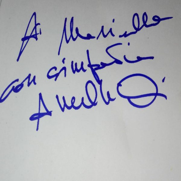 “Ho visto tutti gli allenamenti degli azzurri tifando come se fossi al San Paolo, ho fatto file incredibili pur di riuscire ad accaparrarmi autografi e selfie con i miei beniamini, procurandomi un eritema, lividi per la ressa. Ma ne e’ valsa la pena, per tutto. Mi restava però un cruccio, uno di quelli che sentivo il bisogno di soddisfare:l’autografo di Mister Ancelotti sul libro acquistato l’anno del suo arrivo a Napoli, libro che mi ha permesso di conoscere, apprezzare e stimare un grande uomo, e non solo l’uomo di sport, l’allenatore di successo, che ha vinto tutto”.