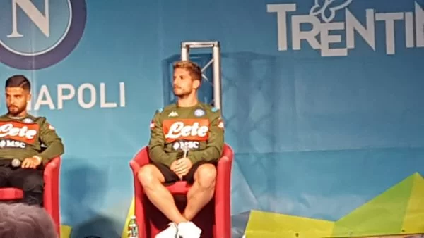 L’attaccante del Napoli Dries Mertens, in compagnia dei compagni di squadra Manolas e Insigne, ha risposto ad alcune domande dei tifosi azzurri presenti al ritiro di Dimaro Folgarida.