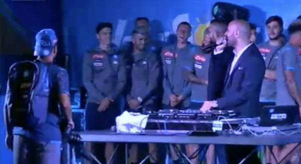 21.30 – Tommaso Starace Show! Il Magazziniere del Napoli viene chiamato sul palco e inizia un ballo particolare coinvolgendo i calciatori azzurri! (GUARDA QUI). Dopodiché i calciatori cantano “‘O Surdato ‘Nnammurato” e saltano al coro “chi non salta è juventino!” (IL VIDEO). Ancelotti grida un fortissimo “Forza Napoli!”.