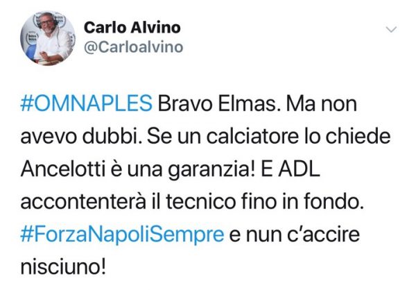 “Bravo Elmas. Ma non avevo dubbi. Se un calciatore lo chiede Ancelotti è una garanzia! E ADL accontenterà il tecnico fino in fondo”.