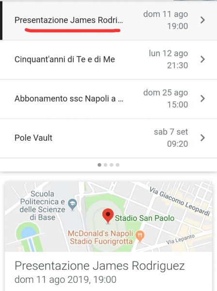 Sta facendo il giro dei social un’immagine che stuzzica e non poco la fantasia dei tifosi azzurri. Si tratta di una ricerca di google in cui sono selezionati i prossimi eventi che si terranno allo stadio San Paolo.