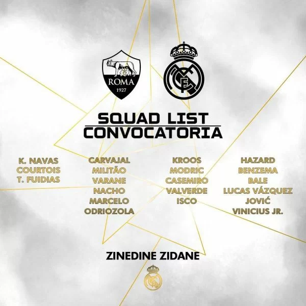Zidane ha convocato 20 giocatori per la partita contro la Roma, che si gioca questo pomeriggio (20:00, Realmadrid TV) allo Stadio Olimpico.