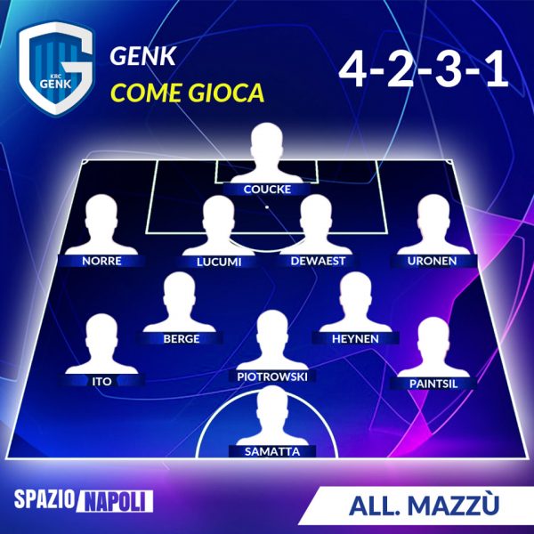 Il club belga ha cambiato quest’anno il suo tecnico passando da Philippe Clement a Felice Mazzù, da belga in belga. 4-2-3-1 è il modulo con il quale il Genk scende in campo con variazioni che possono portare anche un 4-3-3. Tra le sue punte di diamante sicuramente c’è Samatta, in estate anche al centro di molte trattative di mercato. In questa stagione ha già realizzato cinque reti in Pro League. Il tanzaniano è l’unica punta di Mazzù, che in porta si affida a Coucke, difesa schierata a 4 con la coppia centrale formata da Lucumi e Dewaest, Norre a destra e Uronen a sinistra. Centrocampo con Berge e Heynen insieme a Paintsil, Piotrowski e Ito a completare il reparto.
