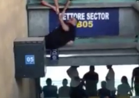 Il giornalista e Consigliere Regionale della Campania di Davvero Verdi, Francesco Emilio Borrelli, ha pubblicato un post sul proprio profilo Facebook un video in cui è possibile vedere un tifoso del Napoli, durante la partita giocata ieri al San Paolo con la Sampdoria, provare a scavalcare da un settore all’altro dello stadio.