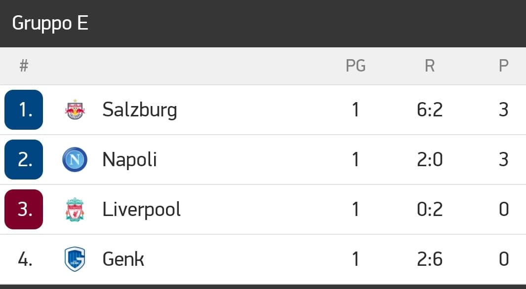 LA CLASSIFICA DEL GRUPPO E