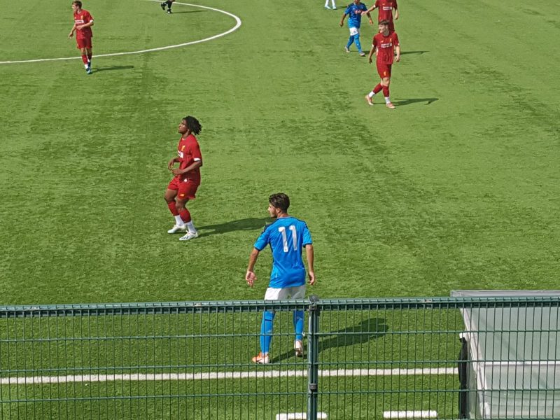 NEWS CALCIO NAPOLI Il Napoli questa sera scenderà in campo contro il Liverpool per l’esordio stagionale in Champions League. Per la competizione europea la società azzurra ha scelto di aggiornare alcuni dettagli della maglia partenopea. Infatti al posto del bianco sulla maglia casalinga ci sarà il blue navy e gli inserti saranno argentati, così come i numeri delle casacche azzurre. Ecco la foto proveniente dalla Youth League, durante il match tra Napoli e Liverpool, che svela i dettagli di quelle che saranno le maglie che gli azzurri indosseranno questa sera: