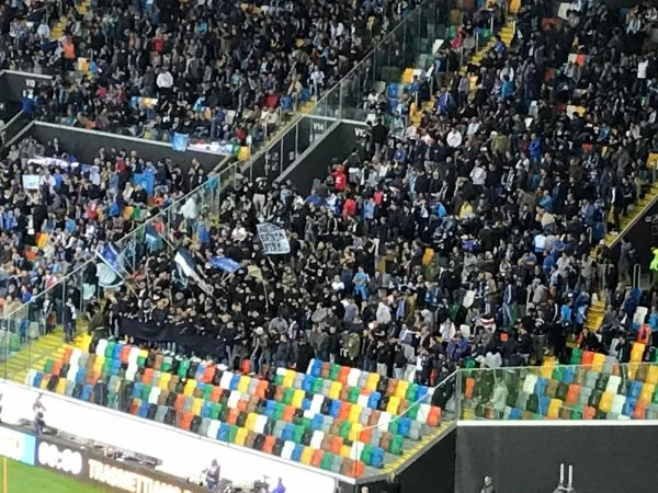 Ma i tifosi dell’Udinese, a pochi minuti dal termine della partita, non hanno pensato solo ad incitare la propria squadra verso il pareggio. Infatti dagli spalti della Dacia Arena sono partiti improvvisamente i soliti cori “Noi non siamo napoletani”.