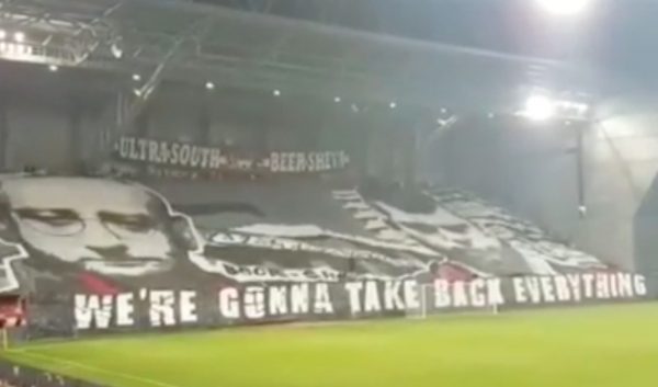 Ebbene i temi della serie sono stati recentemente usati anche nell’ambito del calcio. Sì, a pensarci sono stati i tifosi del Beer Sheva, club israeliano, con una coreografia davvero suggestiva. Mentre lo speaker fa partire dagli altoparlanti la canzone di ‘Mokadelic“, usata per tutti i finali di ogni puntata, dalla Curva dei tifosi spunta una enorme gigantografia con i volti dei personaggi di Pietro e Genny Savastano, due protagonisti della serie interpretati rispettivamente da Fortunato Cerlino e Salvatore Esposito.
