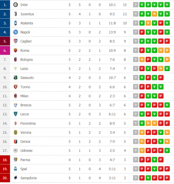 CLASSIFICA SERIE A – Il Napoli crolla in casa per 1-0 e scivola al quarto posto in classifica a meno sei dall’Inter. I nerazzurri hanno battuto la Lazio a San Siro per 1-0. Vince anche la Fiorentina contro la Sampdoria, la squadra di Montella trova la prima vittoria del campionato battendo i doriani per il risultato di 2-1. Trova la vittoria anche il Lecce in casa della SPAL. I pugliesi si impongono a Ferrara con il risultato di 1-3. Pareggio a reti inviolate invece per Genoa-Bologna e vittoria all’ultimo secondo per il Parma contro il Sassuolo.