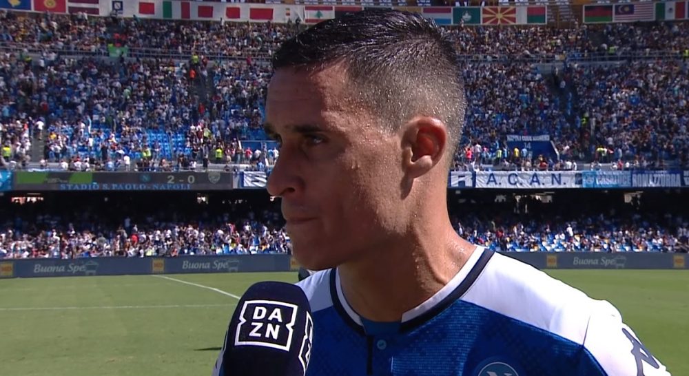 Napoli e Brescia si sfidano sul prato del San Paolo. I padroni di casa conducono per 2-0 grazie alla rete segnata da Mertens e da Manolas nel finale. Al termine della prima frazione di gioco Callejon è intervenuto ai microfoni di DAZN.