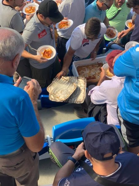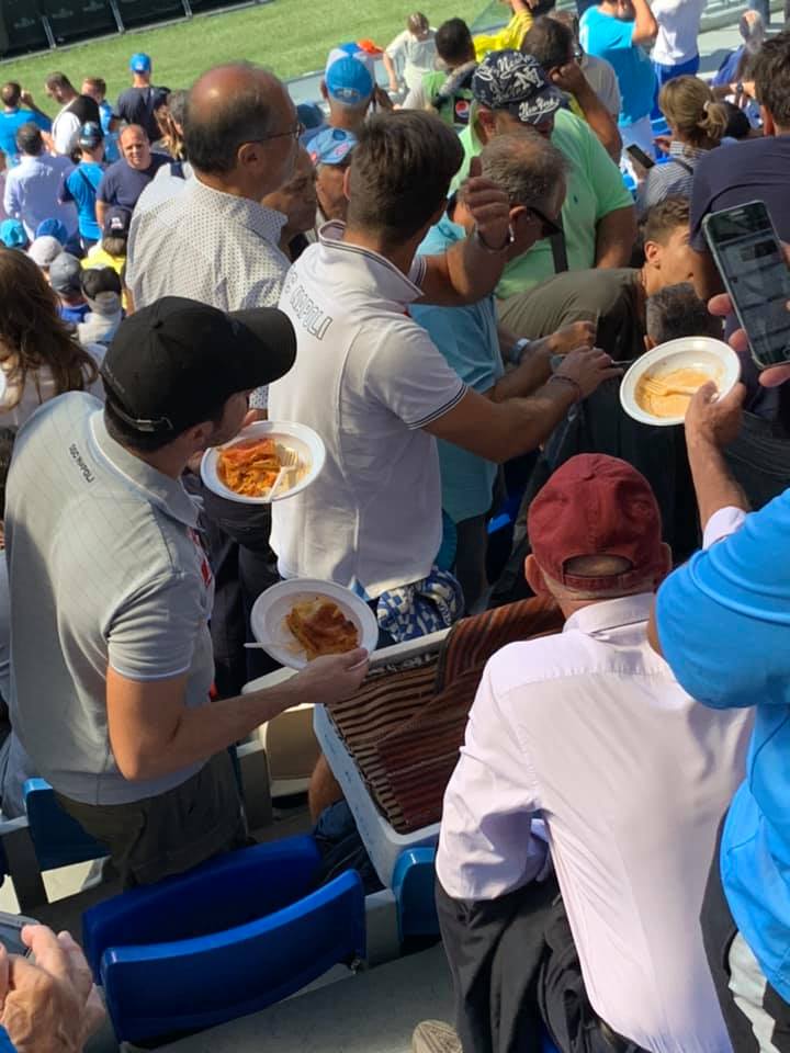 Non sono mancati, però, momenti caratteristici e da incorniciare. Sui social, infatti, è stato documentato un episodio che strappa il sorriso e tanti applausi. Alcuni tifosi, infatti, hanno pranzato con lasagne e offerto il cibo a tutti i presenti, in un gesto di bell’altruismo. Si legge sui social: