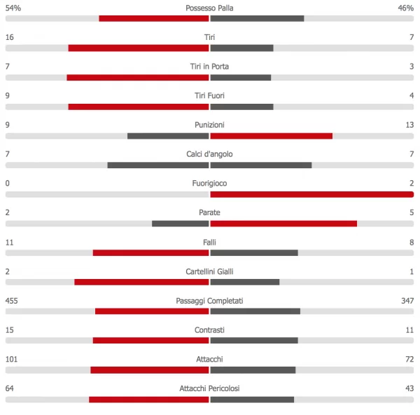 Ebbene ciò che balza agli occhi è il numero di occasioni avute dal Napoli che, un po’ come accaduto con il Cagliari, ha calciato tantissime volte verso la porta avversaria: ben 16 i tiri, di cui 7 indirizzati in porta.
