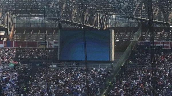 TABELLONE SAN PAOLO – Attimi di disorientamento al San Paolo. Nello stadio rinnovato fanno una bellissima figura i tabelloni che indicano lo stato della partita.