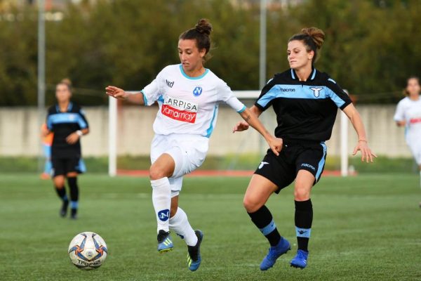 Ottimo esordio in Coppa Italia per il Napoli Femminile. Nella prima gara del girone valido per il primo turno la squadra del presidente Lello Carlino ha superato 4-1 la Lazio del presidente Lotito al termine di una gara mai in discussione. La prima rete è arrivata al 15’ con un colpo di testa della greca Chatzinikolaou sulla respinta della traversa colpita da Gelmetti. La stessa Gelmetti dopo 5’ ha colpito un palo, mentre al 42’ è arrivato il raddoppio con un gran gol di Oliviero da fuori area. Altri 2’ e Chatzinikolaou ha messo a segno la doppietta personale con una deviazione sotto porta che ha permesso di andare al riposo sul 3-0.