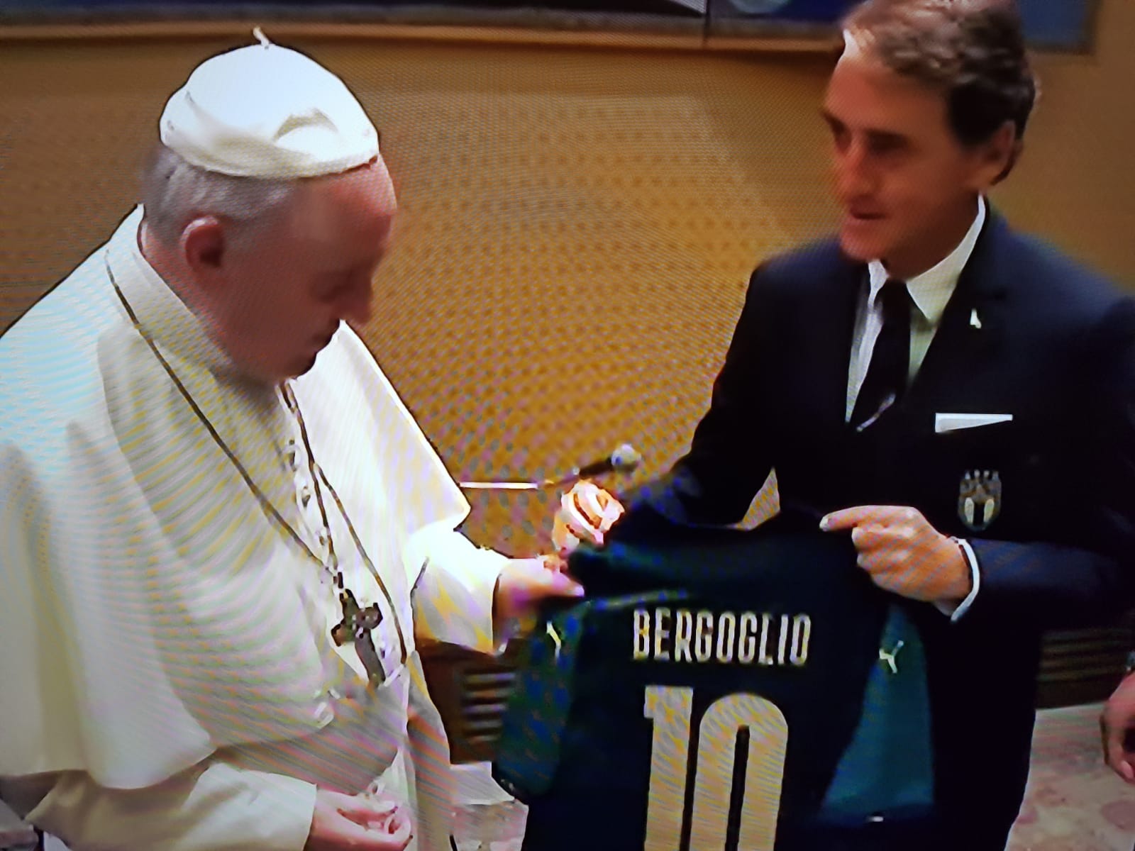 Papa Francesco ha poi salutato tutti i giocatori della Nazionale, tra cui Lorenzo Insigne e Giovanni Di Lorenzo, come testimoniano le foto pubblicate dalla FIGC