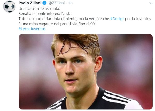 “Una catastrofe assoluta. Benatia al confronto era Nesta. Tutti cercano di far finta di niente, ma la verità è che DeLigt per la Juventus è una mina vagante dal pronti-via fino al 90‘”.