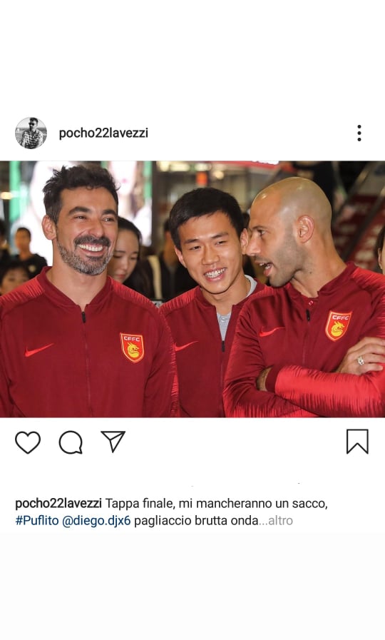 La didascalia dell’ex azzurro sembra suggerire come sia arrivata, probabilmente, la fine dell’esperienza cinese per l’argentino.