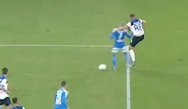 Durante il secondo tempo del match di ieri un fallo di Pasalic su Callejon giudicato fuori area dal direttore di gara, Giacomelli. Come si nota dalla foto sottostante, Pasalic colpisce alla testa, con gamba molto alta, l’attaccante spagnolo del Napoli. Il contatto non è chiaro se avvenga dentro o fuori dall’area, ma anche in questo caso il VAR non è intervenuto. E non solo, c’erano gli estremi per l’espulsione per il fallo pericoloso del calciatore dell’Atalanta, al quale però è stata solo comminata un’ammonizione.