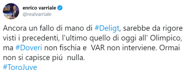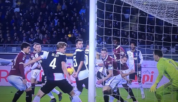 Questo l’episodio da rigore non fischiato nel corso del derby della mole. De Ligt tocca il pallone con la mano, ma l’arbitro non fischia.