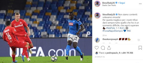 Kalidou Koulibaly ha commentato il pareggio del Napoli contro il Salisburgo tramite il proprio account IG: