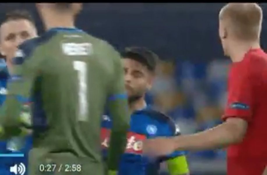 Episodio particolare avvenuto a fine partita ieri, dopo Napoli-Salisburgo. Come si può vedere da un video che sta circolando sul web, al fischio finale del match, Lorenzo Insigne si è avvicinato ad Alex Meret per dargli il cinque, ma quest’ultimo si è rifiutato di salutare il compagno.