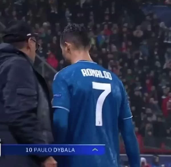 Cristiano Ronaldo lascia scontento il campo all’82’ di Lokomotiv Mosca-Juventus: a pochi minuti dalla fine della gara, Maurizio Sarri ha infatti deciso di sostituire il portoghese con Paulo Dybala.