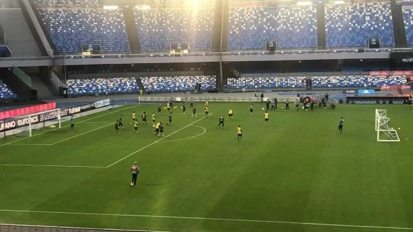 ORE 15.20 – Mancano circa 10 minuti all’inizio dell’allenamento del Napoli in campo, ma al momento – riferisce Radio Kiss Kiss Napoli – ci sono meno di 100 tifosi al San Paolo. Probabilmente una cinquantina.