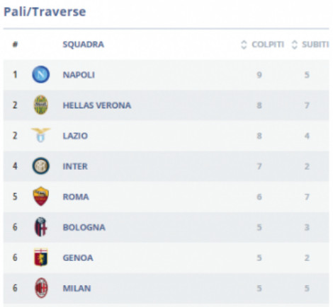 E se alla scarsa brillantezza sotto porta, ad un gioco lento e prevedibile, all’entusiasmo che latita e alla poca intensità vista in campo, si aggiunge la sfortuna, allora il quadro è davvero completo. Già lo scorso anno, infatti, il Napoli era stata la squadra con più pali colpiti. Primato che – almeno quello – gli azzurri hanno conservato. Ben 9 i legni colpiti in 12 gare di campionato. Chiaro segnale che in questo periodo ai partenopei gira davvero tutto storto.
